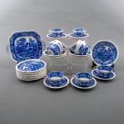 Aardewerk serviesgedeelte, model Sponge's Tower, uitvoering Copeland, Engeland, circa 1900, bestaande uit: taartschaal, twaalf taartbordjes, en elf theekop-en-schotels, -één kopje met een beetje craquelé-, bordje Ø 20 cm
