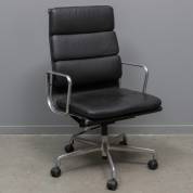 Aluminium bureaustoel met zwart lederen bekleding, model EA 219, ontwerp Charles & Ray Eames, uitvoering Vitra, 101 × 58 × 58 cm