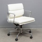 Aluminium bureaustoel met wit lederen bekleding, model EA 435, ontwerp Charles & Ray Eames, uitvoering Vitra, 85 × 58 × 58 cm