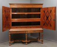 Notengefineerd sterkabinet, staand op gefacetteerde poten, verbonden door accoladevormige regels, begin 18e eeuw -gebruikssporen-, 213 × 181 × 60 cm