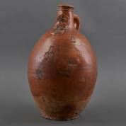 Groot formaat steengoed baardmankruik met enkele stempels in de wanden, Raeren/Frechen, tweede helft 17e eeuw, hoogte 43 cm