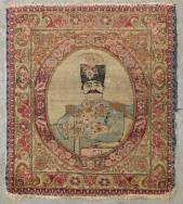 Perzisch tapijtje Kirman met portret van Reza Shah -randslijtage-, circa 1930, 70 × 63 cm