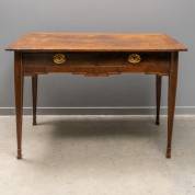 Eiken tafel met twee lades onder het blad, eind 18e/19e eeuw -enkele kringen in blad-, 78 × 121 × 76 cm