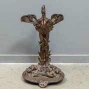 Gietijzeren parapluhouder in de vorm van een reiger, spiedend op een vis, art nouveau, hoogte 53 cm