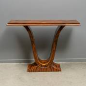 Houten wandtafel, de poot in U-vorm op basement, gefineerd met donker gestreepte houtsoort, art deco-stijl, eind 20e eeuw -krasjes-, 90 × 120 × 34,5 cm