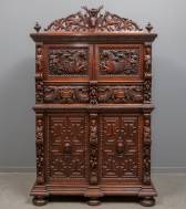 Gesneden eiken kabinet gedecoreerd met zee- en mythologische wezen, met datering 1691 maar van later datum, 20e eeuw, 195 × 125 × 75 cm