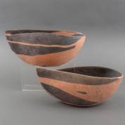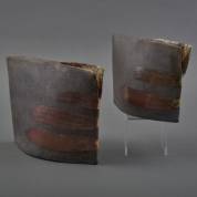 Wil van Blokland (1954), paar gedeeltelijk geglazuurde aardewerk vazen, raku gestookt, 36 × 16,5 × 11,5 cm