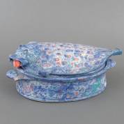 Gert de Rijk (1945-2009), ovale steengoed doos met visvormig deksel, onderop gemonogrammeerd en gedateerd '98, 14,5 × 39 × 23 cm