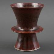 Jan van der Vaart (1931-2000), oranjebruin- en zwartgeglazuurd diabolovormig vaasje met breed uitlopende ring, gesigneerd en gedateerd '77, 18 × Ø 16 cm