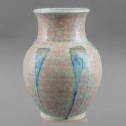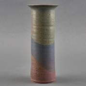 Tineke van Gils (1953), beige en groen-blauwgeglazuurde keramische vaas, gemonogrammeerd, 24,5 × Ø 17 cm