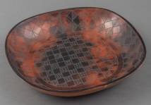 Siddig el Nigoumi (1931-1997), keramische schaal van roodbakkende klei met sgraffitodecor, op onderzijde gesigneerd en gedateerd '80 -twee randchipjes, enkele krasjes-, 5 × 27 × 28 cm