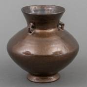 Gebronsd keramisch vaasje met drie lusvormige oogjes, gemerkt Kamo 277, uitvoering Mobach, Utrecht, jaren '30, 17 × Ø 17 cm