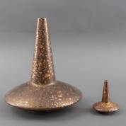 Noor Camstra (1953), kegelvormige, breed uitlopende vaas en vaasje, met zwart en goudkleurig glazuur, niet gemerkt, 38 × Ø 30 cm