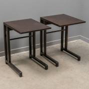 Paar donkerbruine esdoorn bijzettafeltjes, model Eos, ontwerp Chi Wing Lo, uitvoering Giorgetti, Italië, 59 × 40 × 51 cm