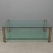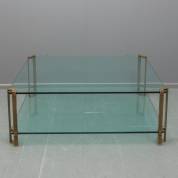 Glazen salontafel met etagère en bronzen poten, model T 24, ontwerp en uitvoering Peter Ghyczy, laatste kwart 20e eeuw -randchip van etagère, brons vlekkerig-, 130 × 80 × 45 cm