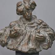 Dick Aerts (1936), bronzen beeld op zwart marmeren basement: moeder en kind, gemerkt Aerts -volgrecht van toepassing-, inclusief basement 64 × 45 cm