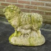 Betonnen tuinbeeld: schaap met lammetjes -barsten-, hoogte 37 cm