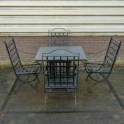 Metalen tuinset, bestaande uit: vierkante tafel met leistenen blad en vier stoelen, 74 × 90 × 90 cm