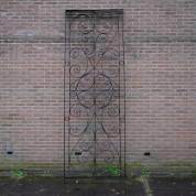 Zwartgelakt smeedijzeren hek met krulornamenten, begin 20e eeuw