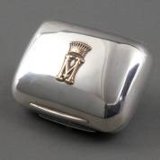 1e gehalte zilveren doosje met gouden applique: gekroonde 'M', Londen, 1883, gewicht 137 gram, 8,5 × 7 cm