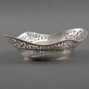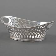 2e gehalte zilveren broodmand met ajourgezaagd spijlendecor afgezet met parelrand, gewicht 385 gram, 31 × 22,5 × 8 cm