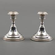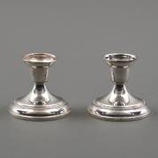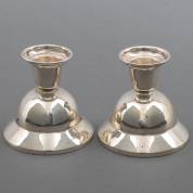 Paar 1e gehalte zilveren tafelkandelaars, meester: A.B. Esmann, Utrecht, 20e eeuw, brutogewicht 232 gram, Ø 7,8 × 10 cm