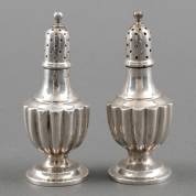 Paar balustervormige 1e gehalte zilveren strooiertjes, Londen, 1920, gewicht 67 gram, 9 cm