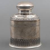 Ovale zilveren theebus gedecoreerd met guirlandes, bladeren en voluten, mogelijk Frankrijk, 19e eeuw, enkel gekeurd met belastingkeur, gewicht 256 gram
