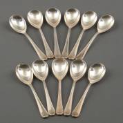Elf 1e gehalte zilveren toespijslepeltjes, rondfilet, meester A. Bonebakker & Zoon, Amsterdam, 1929, 297 gram, 14 cm