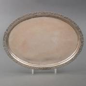 Ovaal 2e gehalte zilveren dienblad met opengewerkte bloemenrand, meester: Zaanlandse Zilversmederij, 1928, gewicht 590 gram, 25,5 × 35 cm