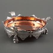 1e gehalte zilveren komfoor met platte koperen binnenbak, het zilver gedecoreerd met palmetten, meester: Dirk Westrik, Amsterdam, 1795, gewicht zilver 248 gram, Ø 18 × 6,5 cm