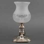 Kelkvormige glazen lamp met 2e gehalte zilveren voet, brutogewicht zonder kap 986 gram, hoogte met kap 40,5 cm