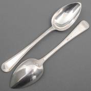 Paar 2e gehalte zilveren groentelepels, rondfilet, meester: H.W. Mooienijzer, Amsterdam, 1940, gewicht 190 gram, 26,5 × 5,5 cm