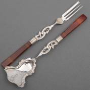 2e gehalte zilveren gegraveerde toasttang met heliotroop steel, meester: Daniël de Haas, Amsterdam, 1868 -steel mogelijk van later datum-, brutogewicht 136 gram, lengte 28 cm