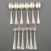 Zes 2e gehalte zilveren dinercouverts, gladde rechte steel, meester: Hendrik Adriaan de Meijer, 's-Gravenhage, 1823, gewicht 823 gram, lengte 21.5 cm