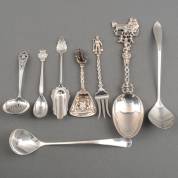 Divers zilveren schepwerk, veelal 2e gehalte, waaronder gelegenheidslepel met getorste steel bekroond met een rijtuig, de bak verso gegraveerd: Australia Square, 14 May 1968, gewicht 212 gram, gelegenheidslepel 19 cm
