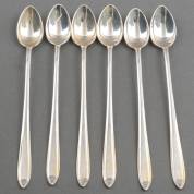 Zes 2e gehalte zilveren longdrinklepels, puntfilet, meester: Koninklijke Van Kempen & Begeer, Zeist, 20e eeuw, gewicht 160 gram 16,5 cm