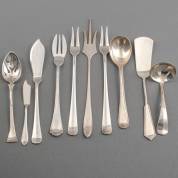 Twaalf 2e gehalte zilveren dessertcouverts, Haags lof, meester: Gerritsen en Van Kempen, Zeist, circa 1910, gewicht 1046 gram, 18 cm
