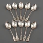 Tien 3e gehalte zilveren theelepels, België, 1868-1942, gewicht 182 gram, 11,5 cm