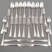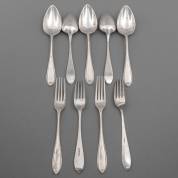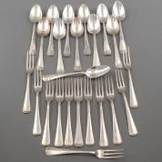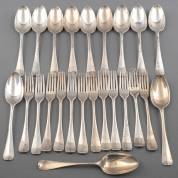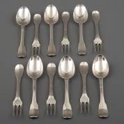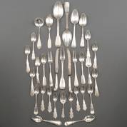 Twaalf 2e gehalte zilveren tafelcouverts, enkel lof, Privas (Ardèche), Frankrijk, 1798-1809, lengte lepel 21,5 cm, gewicht 1563 gram -sleets-