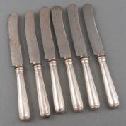 Zes dinermessen met 3e gehalte zilveren heften, hartenfilet, Duitsland, 19e eeuw, brutogewicht 517 gram, lengte 26,5 cm -gebruikssporen-