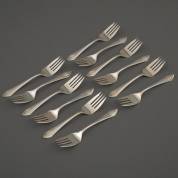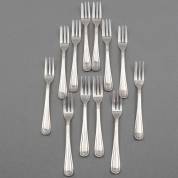 Twaalf 2e gehalte zilveren taartvorkjes, model Oud Prinses 251, meester: Gerritsen & Van Kempen, Zeist, gewicht 228 gram, 12,5 cm