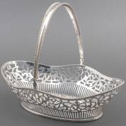 1e gehalte zilveren ajourgezaagde broodmand met hengsel en afgezet met parelrand, meester: D.J. Aubert, Voorburg, 1996, gewicht 553 gram, 31 × 20 × 25 cm