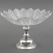 Kristallen tazza met ruitslijpsel op 2e gehalte zilveren voet, 1892, Ø 24 × 17 cm -enkele chips-