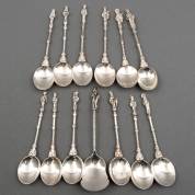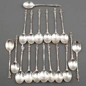 Achttien 2e gehalte zilveren aposteltheelepels, gewicht 180 gram, 10,5 cm