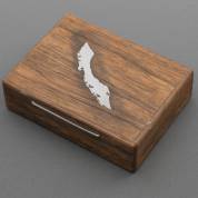 Palissander sigarettendoosje met BWZG inleg in de vorm van Curaçao, 14,5 × 10,5 × 4 cm