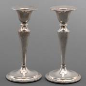 Paar 1e gehalte zilveren balustervormige kandelaars op ronde voet, brutogewicht 264 gram, Ø 7,3 × 14,6 cm -één kandelaar wankelt-
