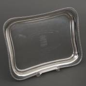 Rechthoekig 2e gehalte zilveren cabaret op vier bolpoten, afgezet met parelrand, het plat gegraveerd: 'Hoogheemraden, Hoofdingelanden en Plaatsvervangers van het Hoogheemraadschap Putten - Aan den Heer J.D. Preijt bij zijn 40 Jarige Ambtsvervulling als Dijkgraaf of Secretaris 1835-1875', meester: Lambertus Spiegeler, Amsterdam, 1861, gewicht 682 gram, 33 × 25,5 cm
