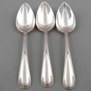 Drie 2e gehalte zilveren groentelepels, dubbelfilet, meester: J.M. van Kempen & Zonen, Voorschoten, 1912 en 1917, gewicht 409 gram, 26 cm