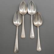 Vier 2e gehalte zilveren dinercouverts, en extra lepel, alle puntfilet, 590 gram, 21 cm